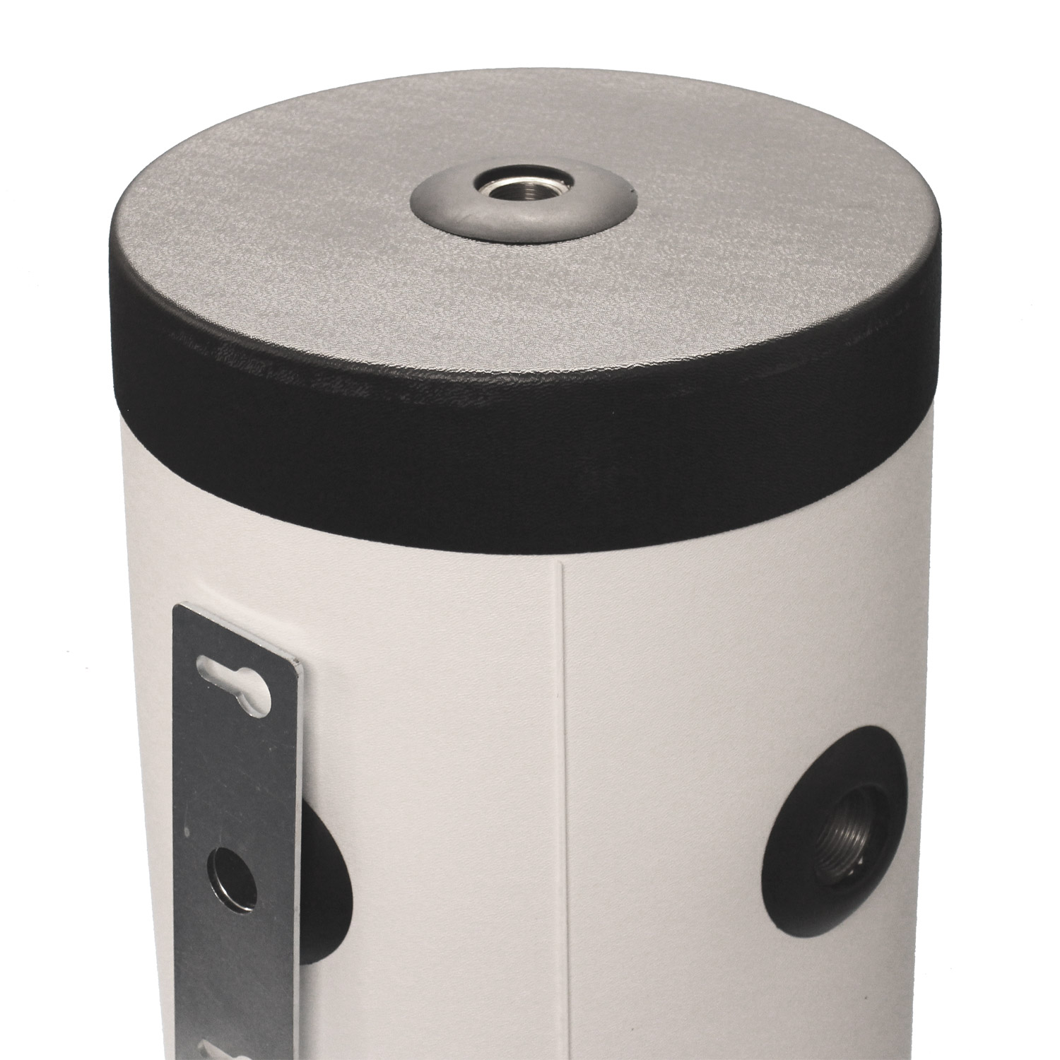 This component functions as a buffer and hydraulic separator, storing extra volume and separating primary and secondary circuits. It features premium polyurethane foam insulation for minimal heat loss and is suitable for both hot and cold water systems, enhancing heat pump efficiency and eliminating compressor pump short cycling. The adjustable wall bracket accommodates uneven surfaces, and extra connections facilitate venting and drainage.